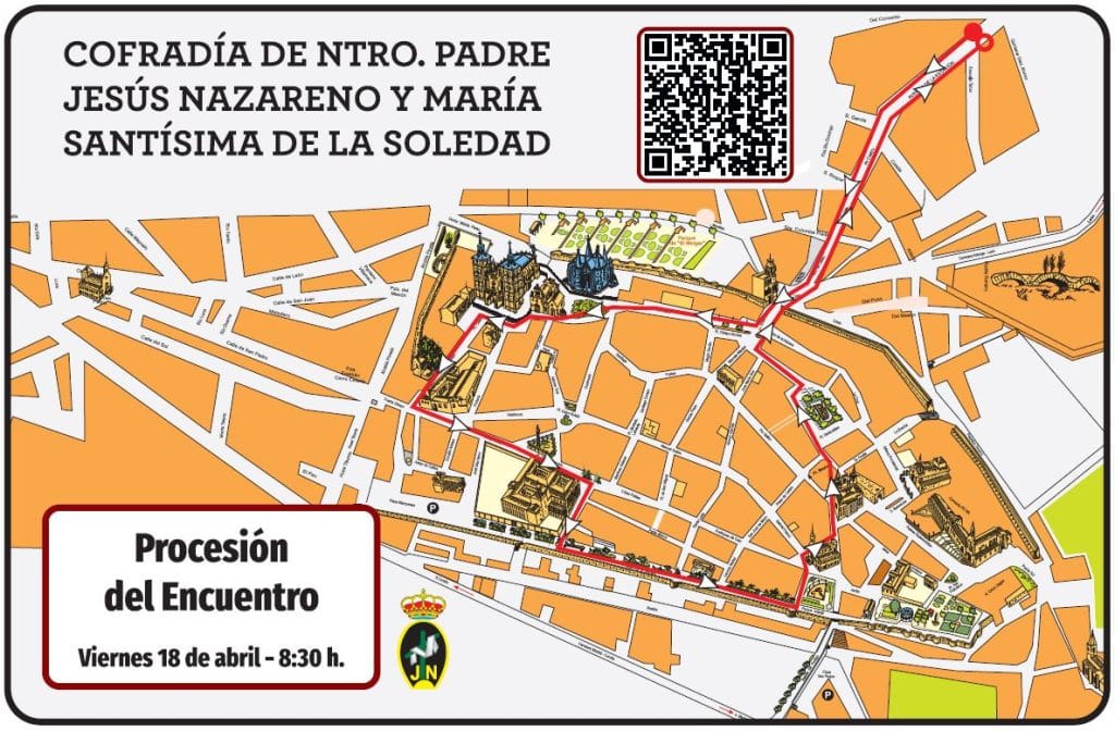 Al finalizar la procesión se repartirá la tradicional bolla de la Semana Santa astorgana a todos los Hermanos participantes. - 08:30: Procesión del Encuentro desde Puerta de Rey, organizada por la Real Cofradía de Nuestro Padre Jesús Nazareno y María Santísima de la Soledad.